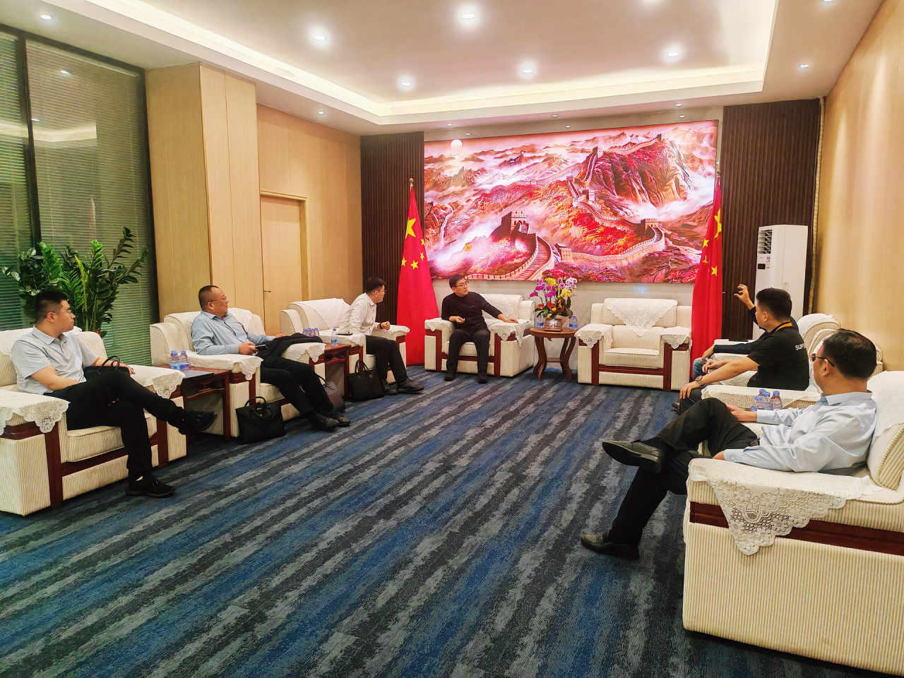 座谈交流中,刘洋总经理对考察团到访表示热烈欢迎,感谢家乡郯城县政府长期以来的关心与支持。他介绍,极致创意深耕数字创意显示领域,构建起创意产品研发 + 内容定制设计 + 系统集成服务的全链条服务体系,在文旅融合、艺术装置、数字展厅、智慧城市等领域积累了丰富的成熟案例与一体化解决方案,曾为多项国家重大活动提供专业技术服务,愿充分发挥企业技术与落地能力,积极对接郯城发展需求,在数字文旅、智慧城市、县域特色光影项目等方面寻求深度合作,助力家乡高质量发展。