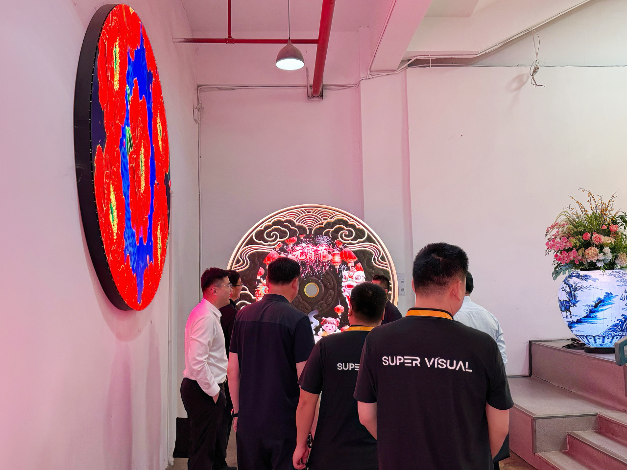 考察期间,于广威县长一行实地参观了极致创意展厅体验中心,沉浸式体验公司原创 LED 创意显示、沉浸式 LED 球幕影院互动、异形定制屏、内容视觉一体化等核心技术成果与典型场景应用案例,详细询问企业发展历程、核心技术研发、市场布局及项目落地等情况,对极致创意在数字创意显示领域的技术创新能力和场景打造实力给予高度关注。